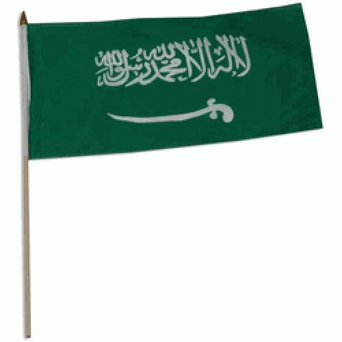 Saudi Arabia hand held wavers flag on plastic stick 30x45cm