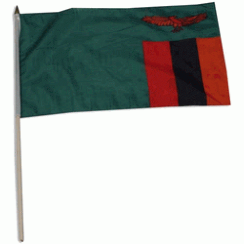 Zambia hand held wavers flag on plastic stick 30x45cm